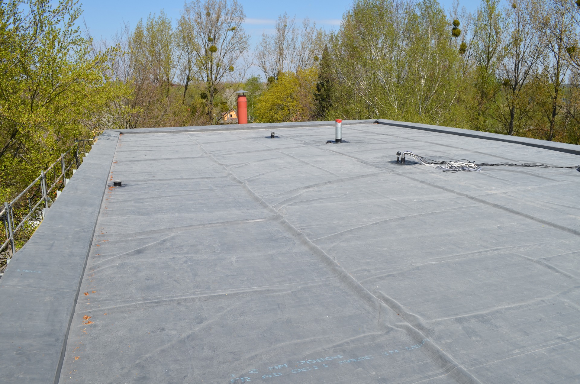 - Zatížený systém kačírkem, atika plechová, celá střecha je z jednoho kusu EPDM membrány.